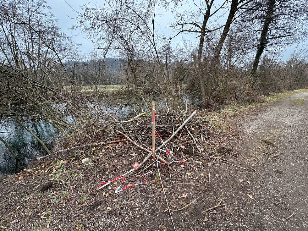 In den letzten Jahren hat sich die Biberpopulation in der Nähe des Mitteldamms immer stärker bemerkbar gemacht. Während zuvor vor allem unterhalb unserer Homespots einzelne Biberbauten sichtbar waren, finden wir 2026 nun sogar direkt ober- und unterhalb der Brücke neue Bauten.